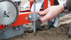 Vis de réglage de la profondeur de semis : Permet un réglage fin et intuitif sans effort