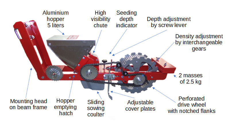- Embedding of seeds thanks to the rear wheel (rubber wheel in option)