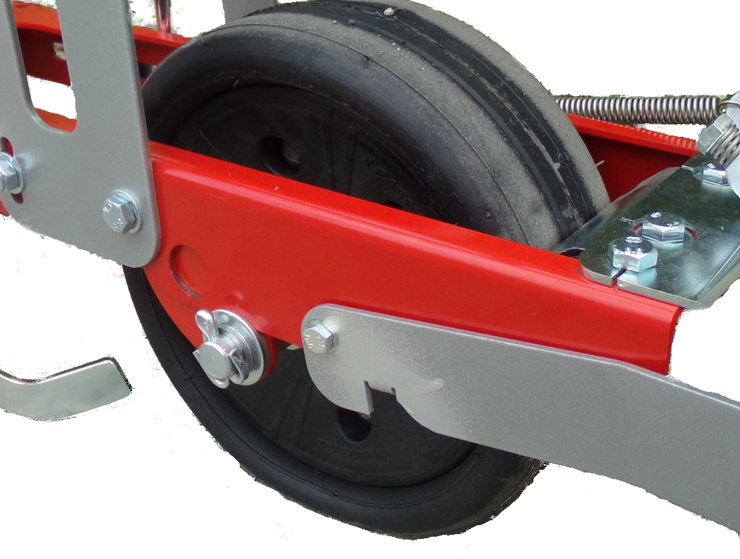 Remplacement par une roué arrière en caoutchouc. Diminue l’encrassement, dans les terres lourdes et collantes.